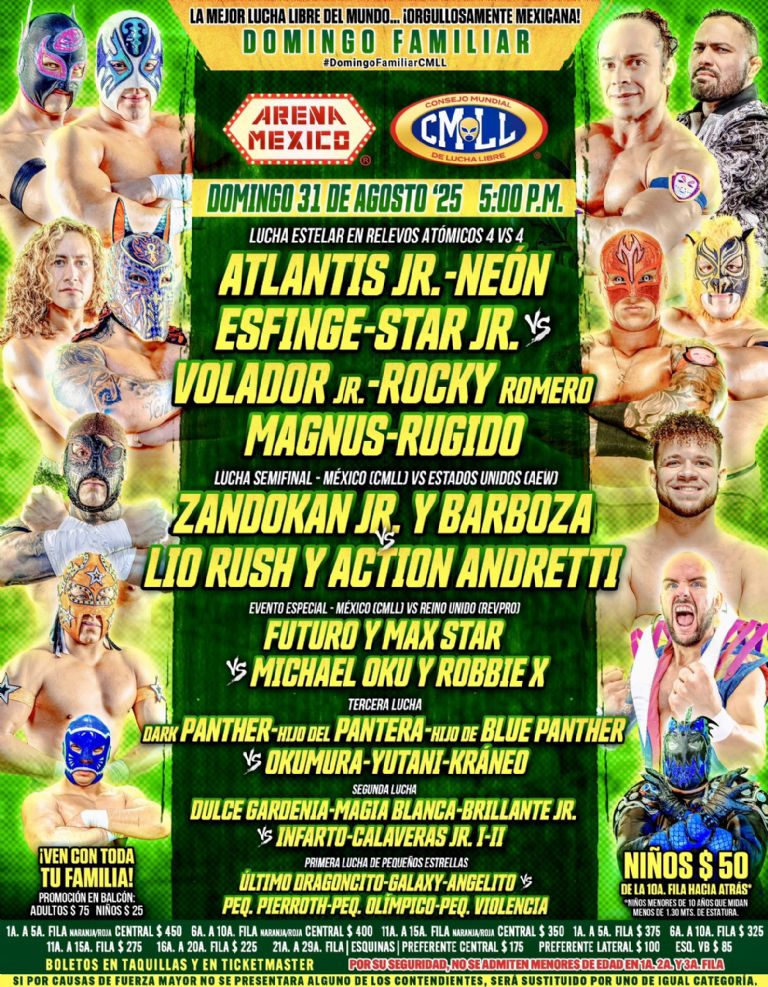 Luchas confirmadas para el Domingo Familiar del 31 de agosto en la Arena México
