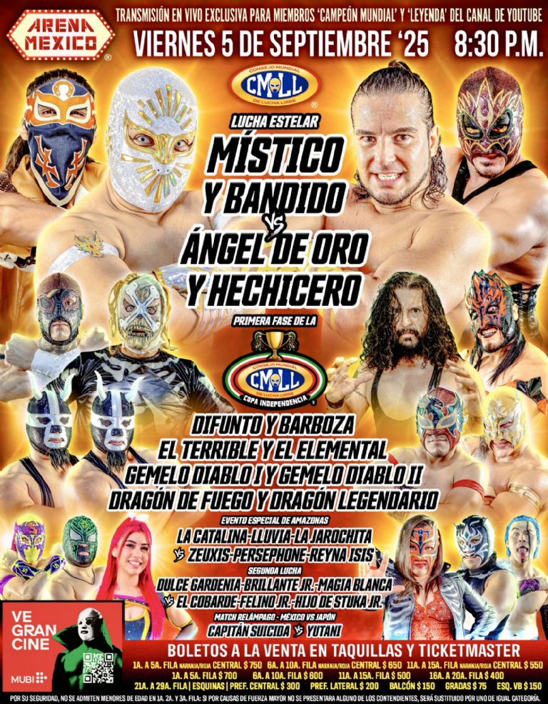 El Consejo Mundial de Lucha Libre (CMLL) contará con 2 funciones especiales durante el fin de semana del viernes 5 y el sábado 6 de septiembre en CDMX. Bandido, actual Campeón Mundial de Ring of Honor (ROH) y de Parejas de All Elite Wrestling (AEW), volverá a la Arena México para competir junto a su ídolo: "El Rey de Plata y Oro" Místico.