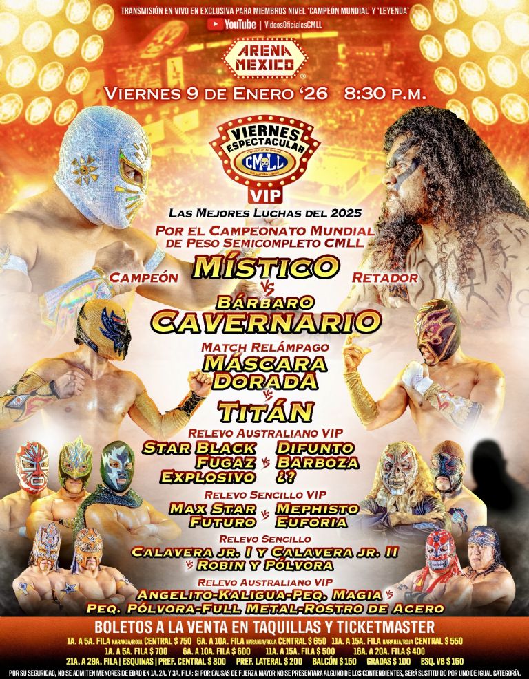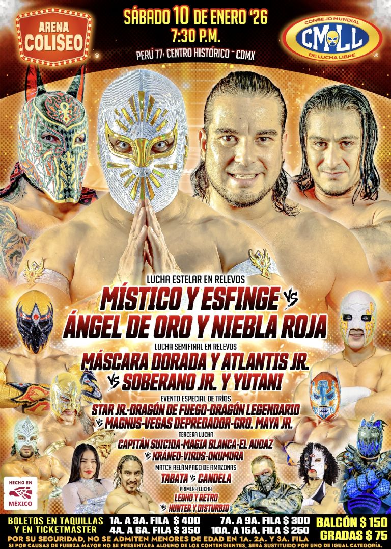 Por ello, Místico repetirá en las contiendas principales del Sábado de Arena Coliseo y Domingo Familiar de Arena México: en que se medirá a nombres como Los Hermanos Chávez (Ángel de Oro y Niebla Roja), así como al "Luchador de otro nivel" Último Guerrero. Mientras que Soberano Jr. participará en 3 de los 4 espectáculos.