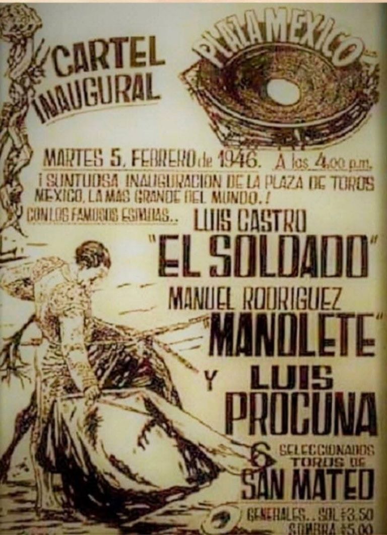 Su primer gran cartel estuvo a cargo de Luis Castro "el Soldado", Manuel Rodríguez "Manolete" y Luis Procuna , con seis toros de San Mateo.