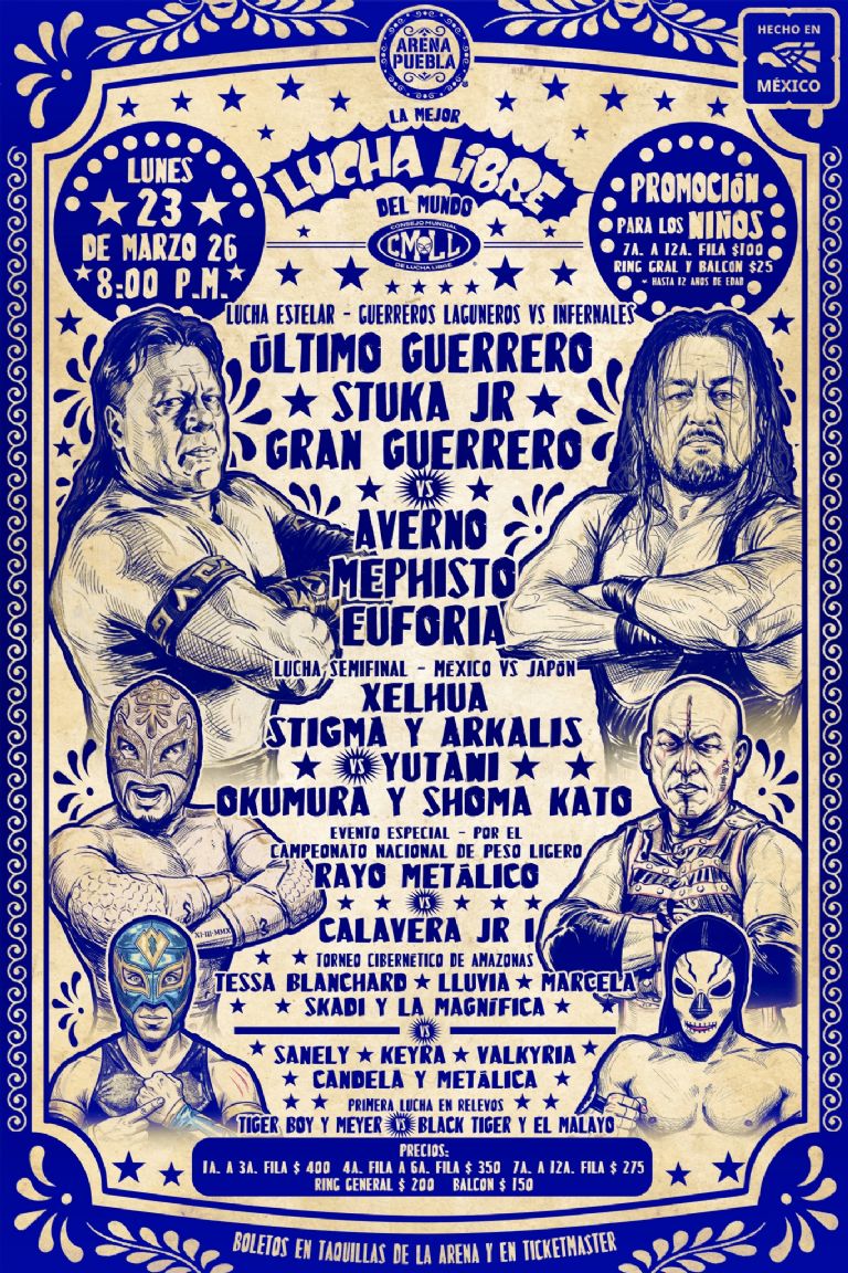 Mientras que estandartes del calibre de Titán, Atlantis Jr, Volador Jr, Bárbaro Cavernario, Xelhua, Esfinge, Máscara Dorada, Último Guerrero, Yutani, Difunto y Star Black tendrán actividad en las distintas sedes nacionales del CMLL; entre ellas, la Arena Coliseo de CDMX, el Templo del Dolor de Puebla y la Arena Coliseo de Occidente de Guadalajara.