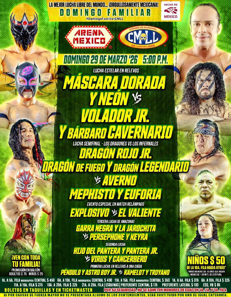 Luchas anunciadas para el Domingo Familiar del 29 de marzo en el CMLL