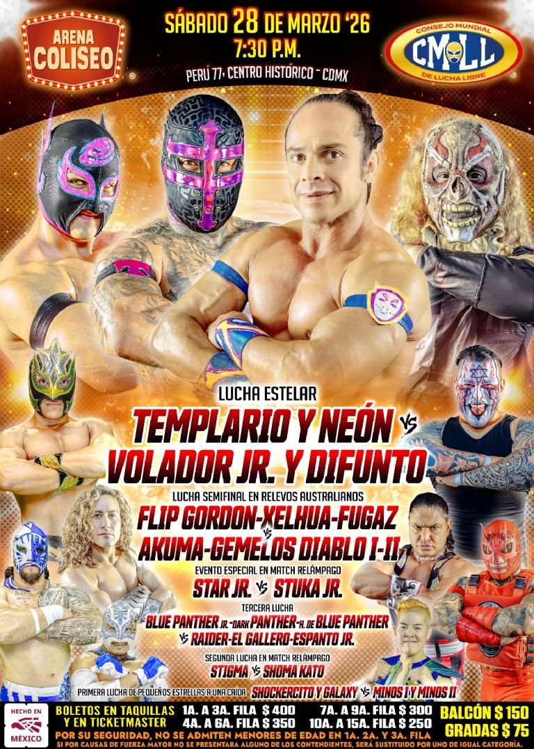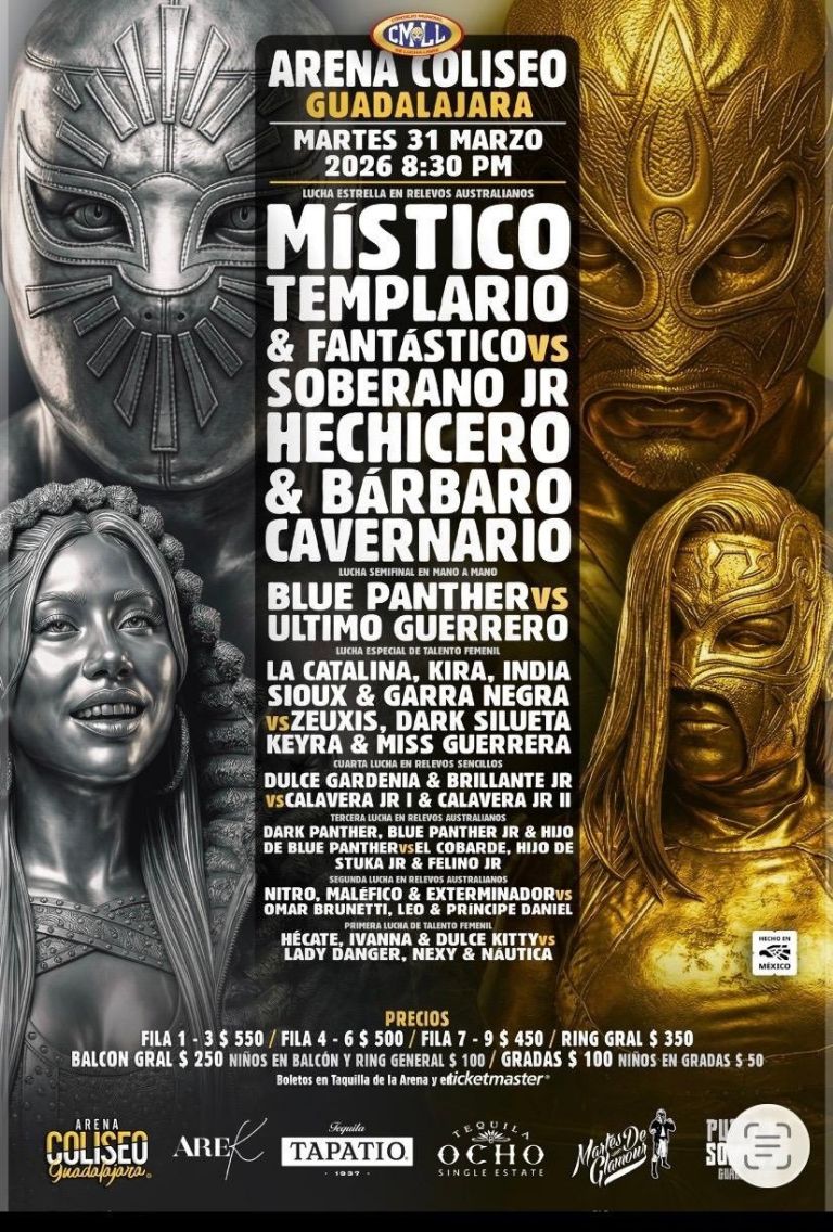 En tanto, facciones como Los Divinos Laguneros, Las Bestias del Diablo, La Ola Negra, Los Dragones, Los Infernales, Los Pantera, Los Cancerberos del Infierno, Los Calavera y Los Herederos tendrán actividad. De igual forma, un mano a mano entre Blue Panther y Último Guerrero destaca en las carteleras del CMLL.