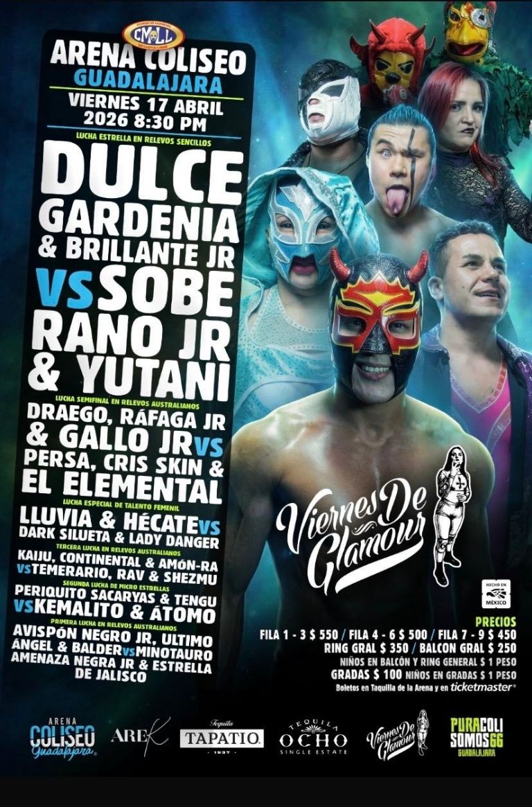 Luchas anunciadas para el Viernes de Glamour del 17 de abril en Guadalajara