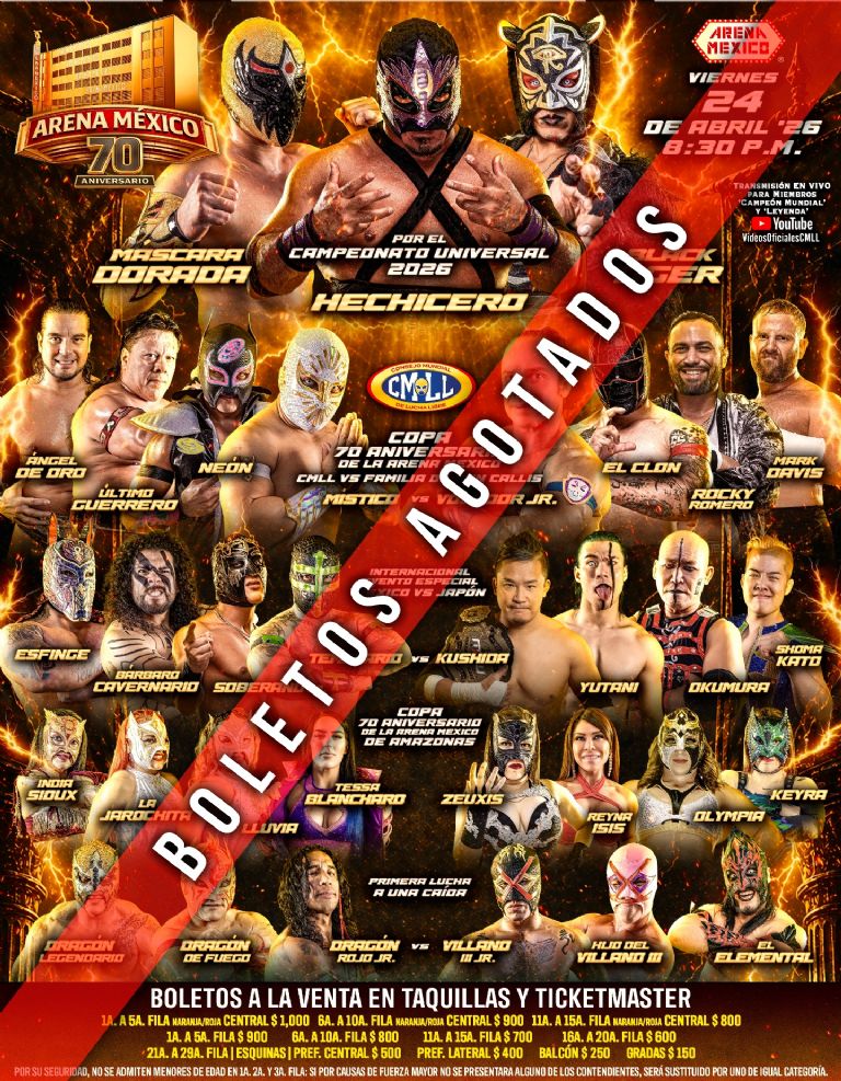 El Consejo Mundial de Lucha Libre (CMLL) celebrará una serie de funciones especiales en sus múltiples recintos del país. Sin embargo, en CDMX, presentará un par de magnoeventos con motivo del 70 Aniversario de la Arena México y el Día del Niño. En ellas, se definirá al nuevo Campeón Universal 2026: entre Black Tiger, Máscara Dorada y Hechicero.