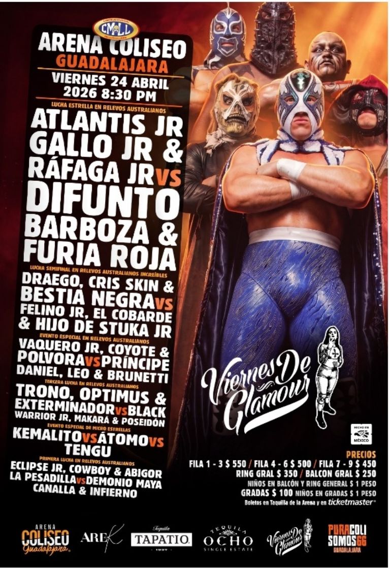 Cartelera del Viernes de Glamour del 24 de abril en la Arena Coliseo de Guadalajara