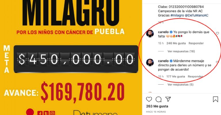 Al ver en Instagram la iniciativa de la Fundación Nariz Roja, y comprobar que faltaban 280 mil 220 pesos para llegar al objetivo, Canelo Álvarez no dudó, y ofreció su ayuda.