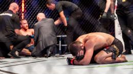 El luchador queda totalmente dolorido en el suelo en el centro del cuadrilátero ante el estupor que generó su caída y la ruptura de sus rodillas. El árbitro de la contienda que iba a protagonizar y un auxiliar tratan de socorrerlo, pero quedan totalmente sorprendidos por el hecho que parecen no tener reacción.