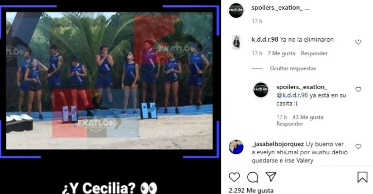 Sin embargo, la eliminación de 'Wushu' es un hecho. Así lo ha confirmado la página de Instagram "Spoilers Exatlón", donde se conoció una foto que revela la ausencia de Ceci Álvarez en una de las competencias a futuro, lo que da por cierto que se irá de la competencia.