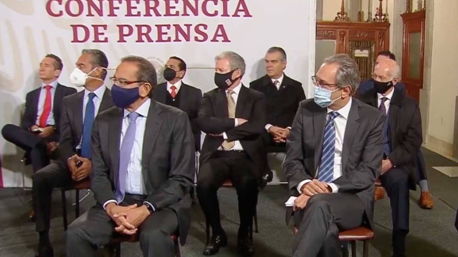 Como representantes del grupo empresarial estuvieron presentes Carlos Salazar Lomelín, del Consejo Coordinador Empresarial; Antonio del Valle Ruiz, del Consejo Mexicano de Negocios (CMN); Luis Niño de Rivera, presidente de la Asociación de Bancos de México; José Manuel López Campos, presidente de la Concanaco; Francisco Cervantes García, presidente de la Concamin, entre otros.