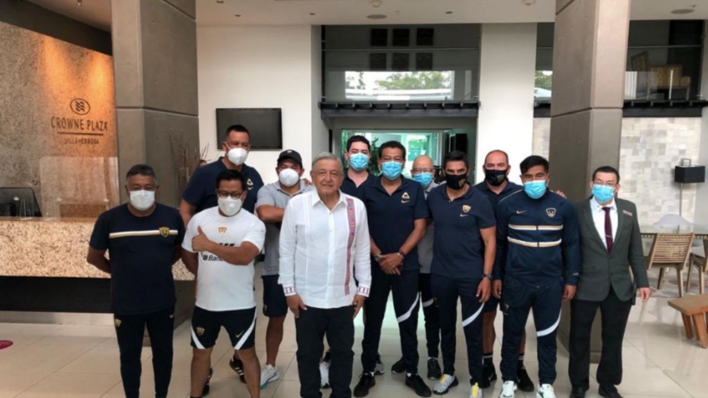 Ramón Neme, presidente del equipo, compartió el encuentro en sus redes sociales y señaló que el deseo de López Obrador es que ganen los Pumas ante el Tlaxcala, en el Estadio Olímpico de Villahermosa.