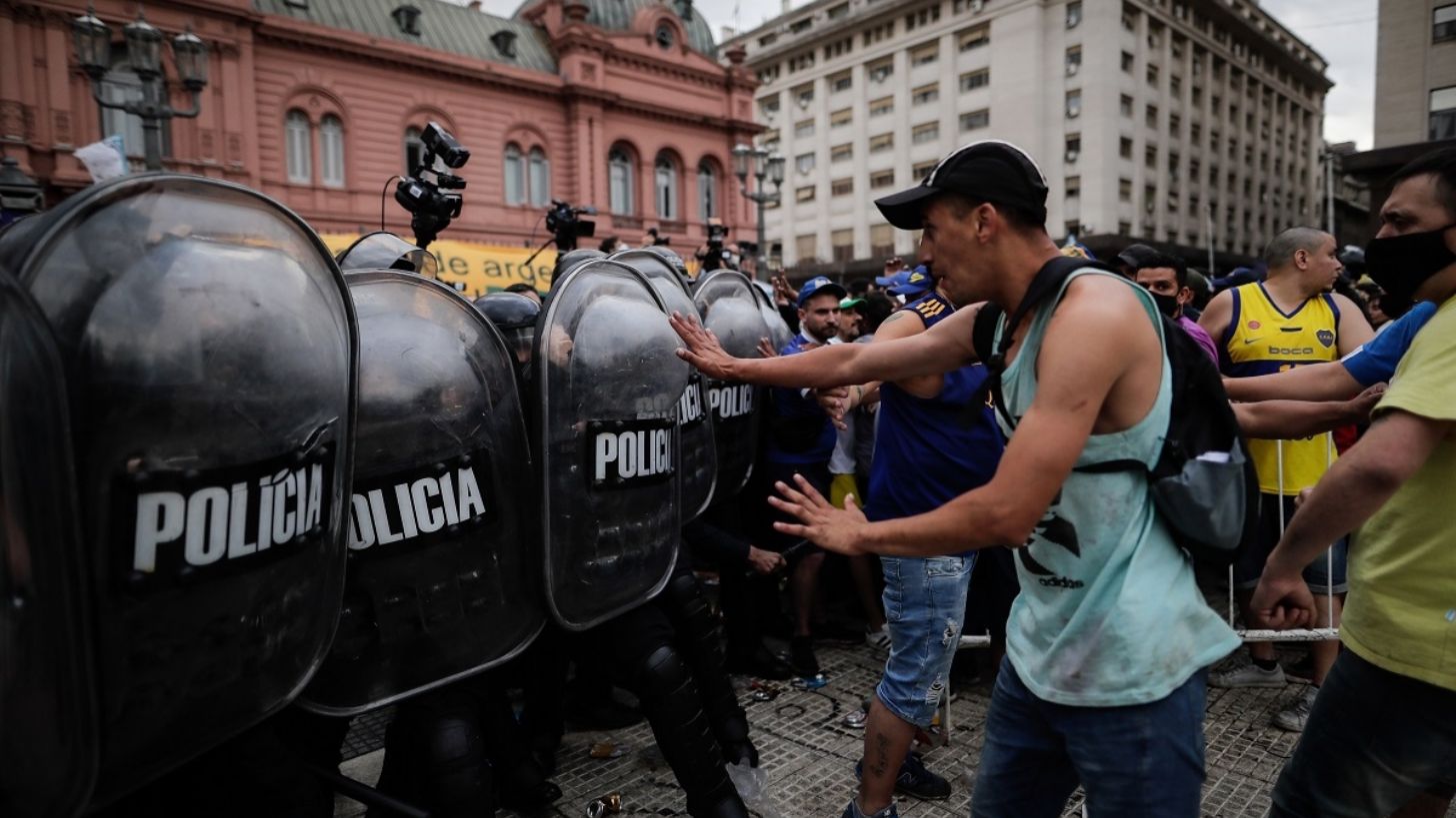 La mañana de este jueves en la Casa Rosada, estuvieron presentes los restos del exfutbolista, pero no se hicieron esperar los disturbios en las cercanías del edificio ante la alta afluencia de personas.