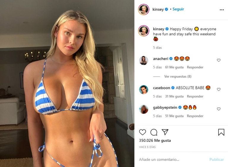 En esta ocasión, Kinsey Wolanski se dejó ver en su cuenta de Instagram luciendo un diminuto traje de baño donde deja ver sus atributos. La foto se ha viralizado en poco tiempo y ha sumado cientos de miles de likes.