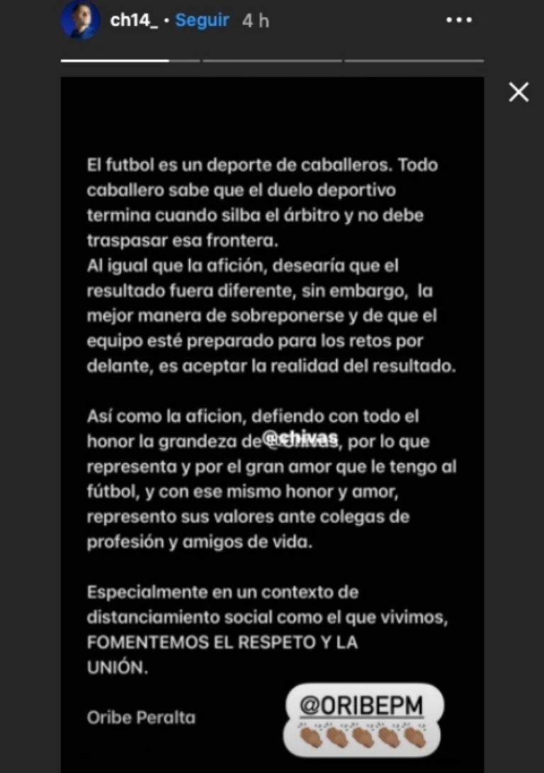 “El futbol es un deporte de caballeros, por lo que cuando el duelo deportivo termina no se debe traspasar esa frontera. Fomentemos el respeto y la unión”, publicó Peralta, horas después de la derrota del Rebaño sobre las Águilas.