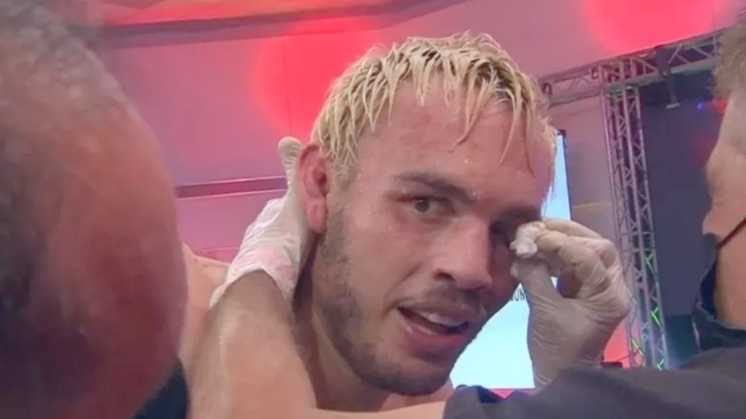 Un corte en el ojo paró la pelea en el sexto round y se tuvo que decidir al ganador acudiendo a las tarjetas de los jueces, las cuales le dieron la victoria por unanimidad a Cázares.