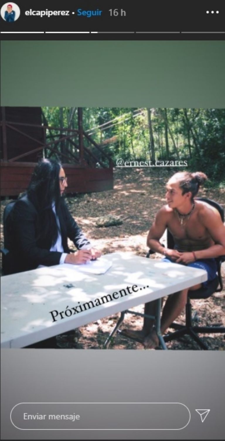 Aunque en la primera de las Instagram Stories se puede ver al conductor en los circuitos del reality deportivo, en la segunda imagen se encuentra vestido como uno de sus personajes a un lado del concursante Ernesto Cázares.