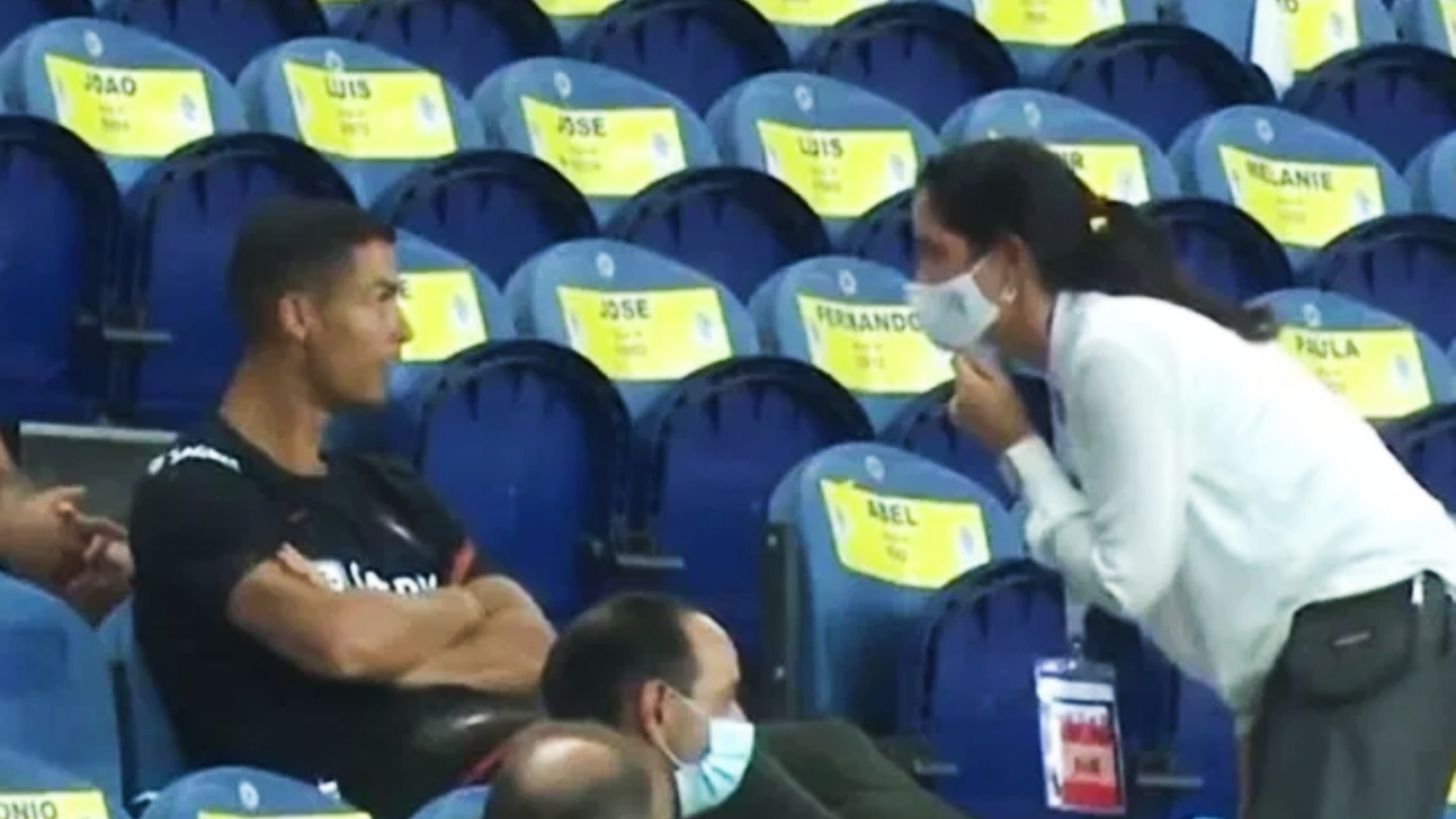 El lusitano es protagonista aunque no esté dentro del campo. Junto a los suplente veía el encuentro cuando una encargada del estadio se acercó al jugador para decirle que se pusiera el cubrebocas.