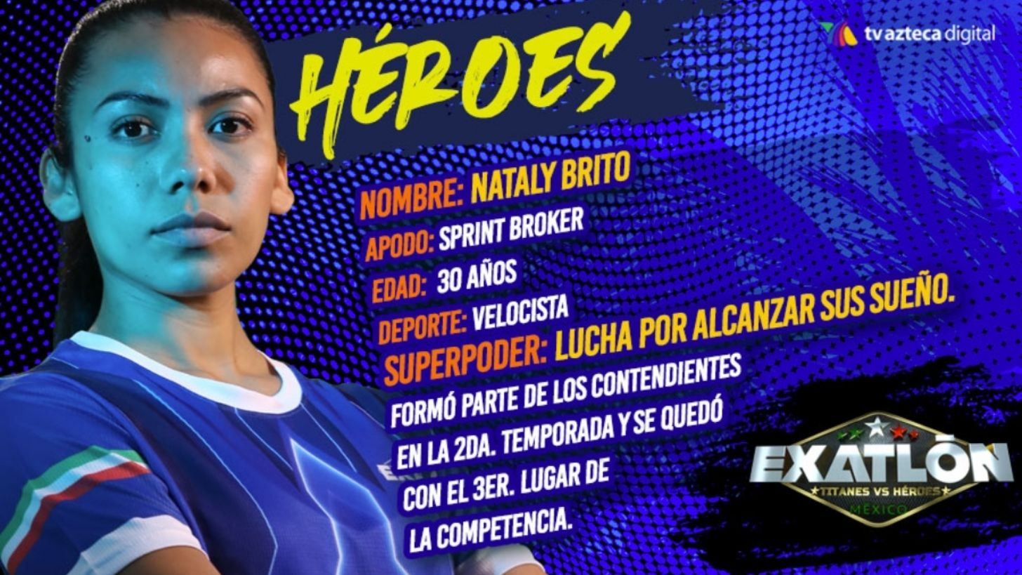 Se destapó el nombre de la nueva integrante de la cuarta temporada del Exatlón México. Natali Brito, que estuvo en la segunda temporada y que terminó en tercer lugar, volverá a batirse en aquellas aguas y arenas en busca de la gloria.