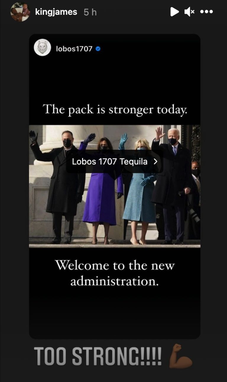 Por ello, ante la toma de posesión como nuevo presidente, LeBron estuvo atento a la ceremonia para enviar sus felicitaciones a Biden a través de su cuenta de Instagram.