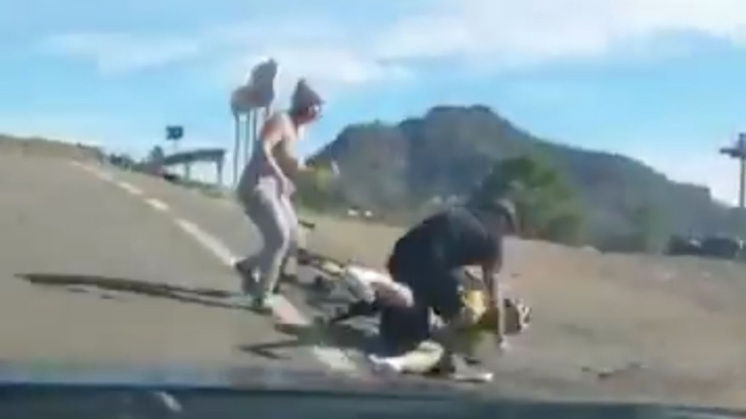En el lugar de los hechos, una tercera mujer, que también levantaba la voz contra el ciclista, quedó en medio de los dos hombres y presenció cuando el sujeto conectó un puñetazo en el rostro del deportista, quien inmediatamente cayó en la carretera y recibió más agresiones.