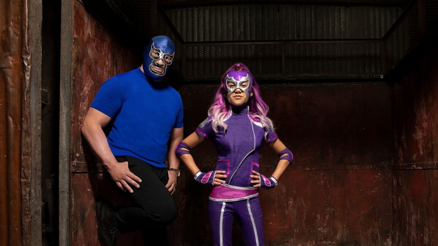 La leyenda de la lucha libre mexicana Blue Demon Jr. y la joven Scarlett Estévez buscarán darle "un giro 'latinx'" a los superhéroes con "Ultra Violet & Blue Demon", una serie que está preparando Disney+.