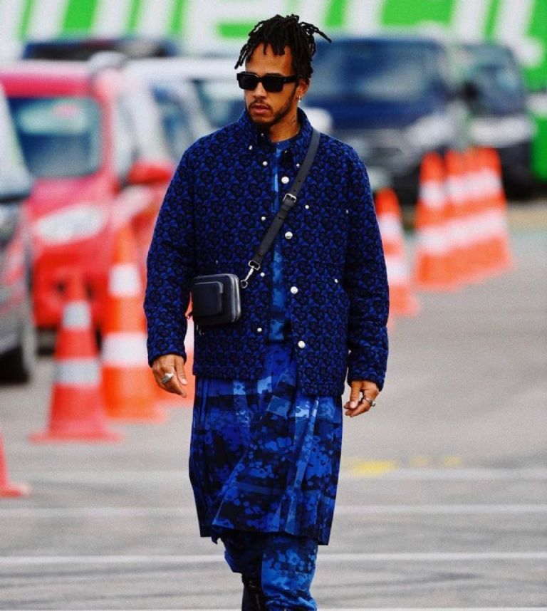 Lewis Hamilton acaba de anunciar que renovó con Mercedes, pero también se dejó ver con una falda escocesa de la marca Tommy Hilfiger para la sesión de una portada, esto como parte de un apaciguamiento sartorial. Pero también se le pudo ver luciendo una falda de igual forma escocesa de cuadros azul cobalto de Burberry pero en la pista, mientras se preparaba para el Gran Premio de Turquía.