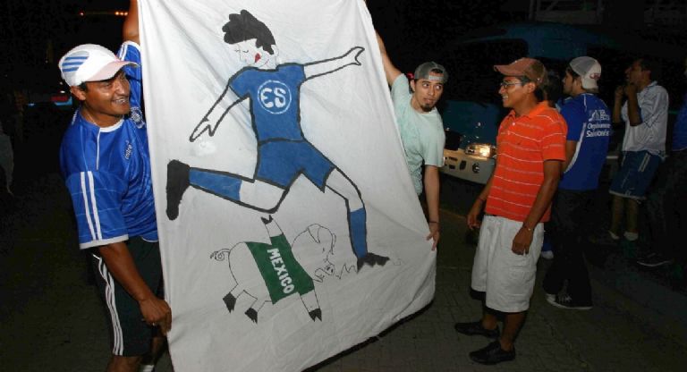 “¡El Salvador, El Salvador, El Salvador!”. Las arengas aparecen frente a desencajados rostros de jugadores mexicanos, a quienes les gritan “Enfermos”, “Cerdos”. Un hombre y un niño se paran a mitad de calle para vender cubrebocas que en México se usan para cuidarse y en el país centroamericano para burlarse. “Protégete contra el virus mexicano”, se lee en sus baberos publicitarios. Todo atiende a un llamado de ‘La Barra Azul’ para usar mascarillas como método de intimidación contra los mexicanos.