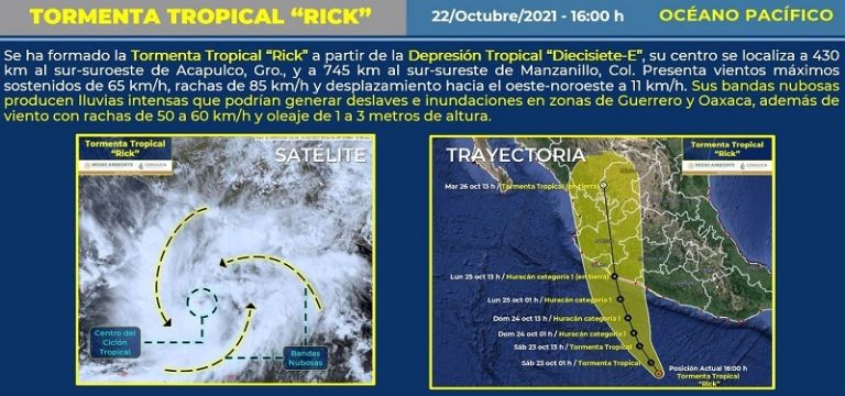 De esta forma, se prevé que ‘Rick’ afecte a estados como Michoacán, Guerrero, Oaxaca, Colima y Jalisco y puede que haya deslaves, inundaciones y elevación en el nivel de ríos y arroyos en esas zonas, por lo que se exhorta a la población a estar pendiente de las indicaciones de las autoridades correspondientes.