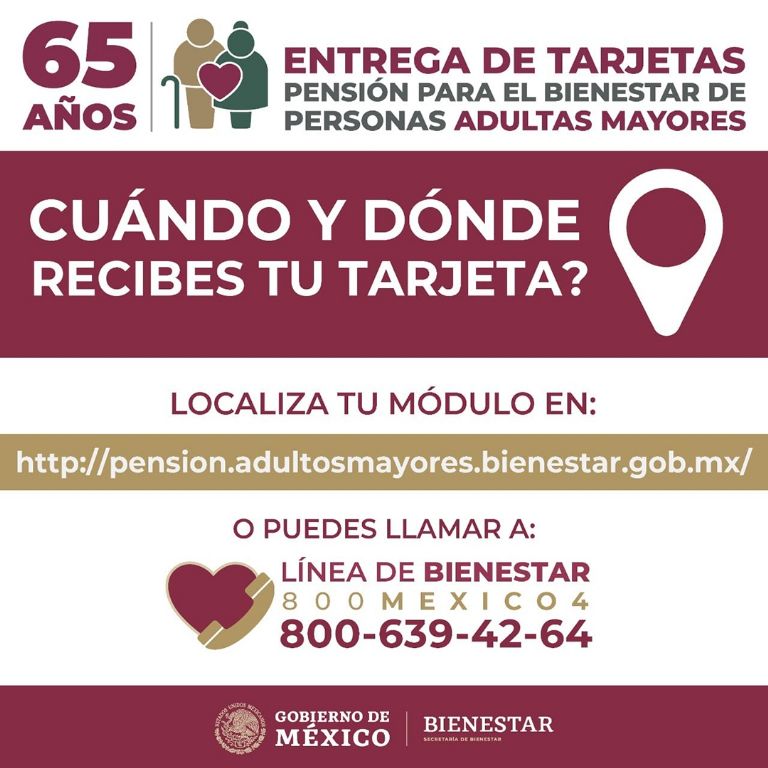 Se abrió el link http://pension.adultosmayores.bienestar.gob.mx/, en el que puedes consultar cuándo estará lista tu tarjeta. Sólo ingresa tu CURP y te estará llegando lugar, fecha y hora. La entrega de tarjetas inicia esta semana en la CDMX y la siguiente se abrirá a nivel nacional.