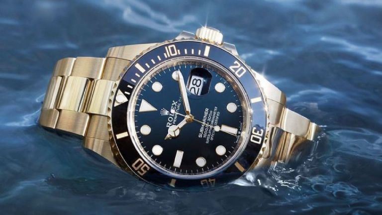 El primero es un Rolex Submariner Date, este modelo es uno de los mejores en su marca, pertenece a la categoría sport y se puede observar un azul marino cubriendo toda la parte de enfrente, el cual contrasta con los detalles en oro amarillo, el cual se puede ver que se extiende a través del brazalete.