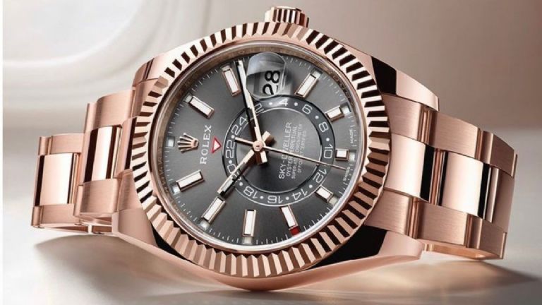 El segundo es un Rolex Sky-Dweller, el cual le hace compañía al primero y de la misma marca, este es una edición con dial blanco y oro rosado a lo largo del case y del brazalete. Este modelo no es tan caro, pero tiene un aspecto sofisticado y obviamente no dejar de ser un Rolex.