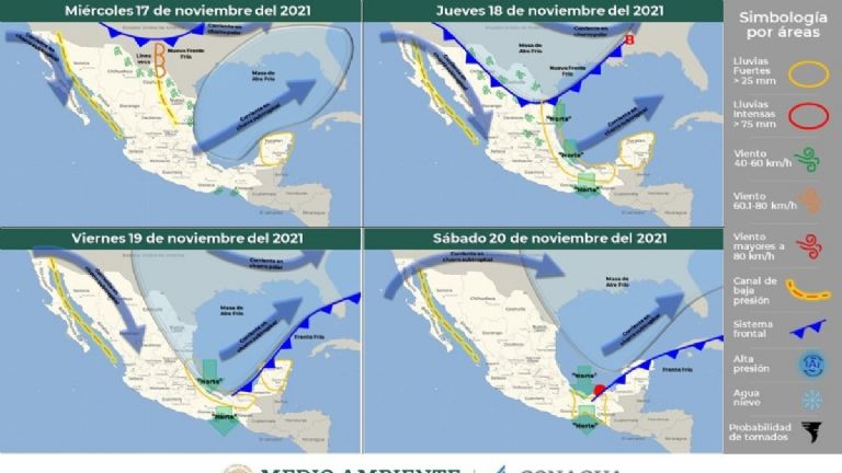 Por otra parte, Conagua, tiene previsto que para el próximo domingo, el Frente Frío Número 8 y su masa de aire helado, sí ocasionará lluvias en la Península de Yucatán, así como en el oriente y sureste del país.