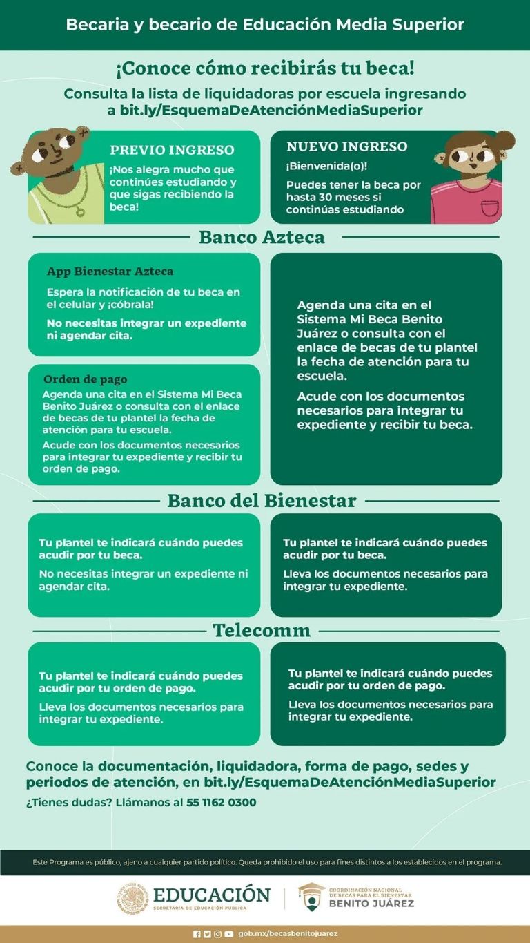 Si no sabes dónde se encuentran dichas oficinas, consulta www.gob.mx/becasbenitojuarez, programa tu cita y entérate bien de todos los detalles acerca de la forma de pago y la documentación que debes de llevar para cobrar tu Beca Bienestar Benito Juárez. Recuerda que también ya hay un nuevo esquema de cobro sin cita.