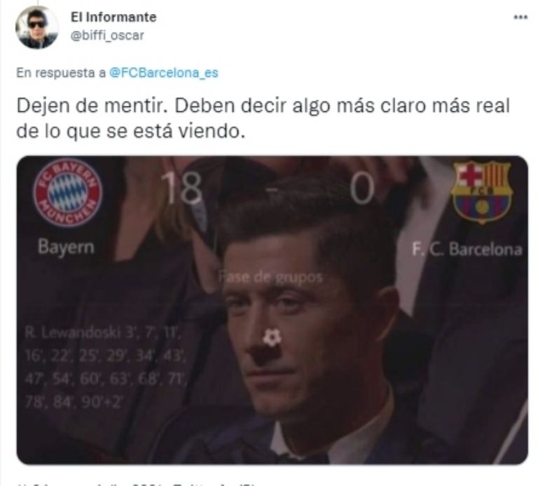 De momento, el equipo culé se mantiene fuera de puestos europeos, en la posición siete con 23 puntos, 13 menos que el líder de la competencia española, el Real Madrid, que se mofa de su archirrival ante la crisis y la renovación que atraviesa en LaLiga. lo mismo hicieron las redes sociales, que con memes y comentarios no dejaron de burlarse del paso blaugrana.