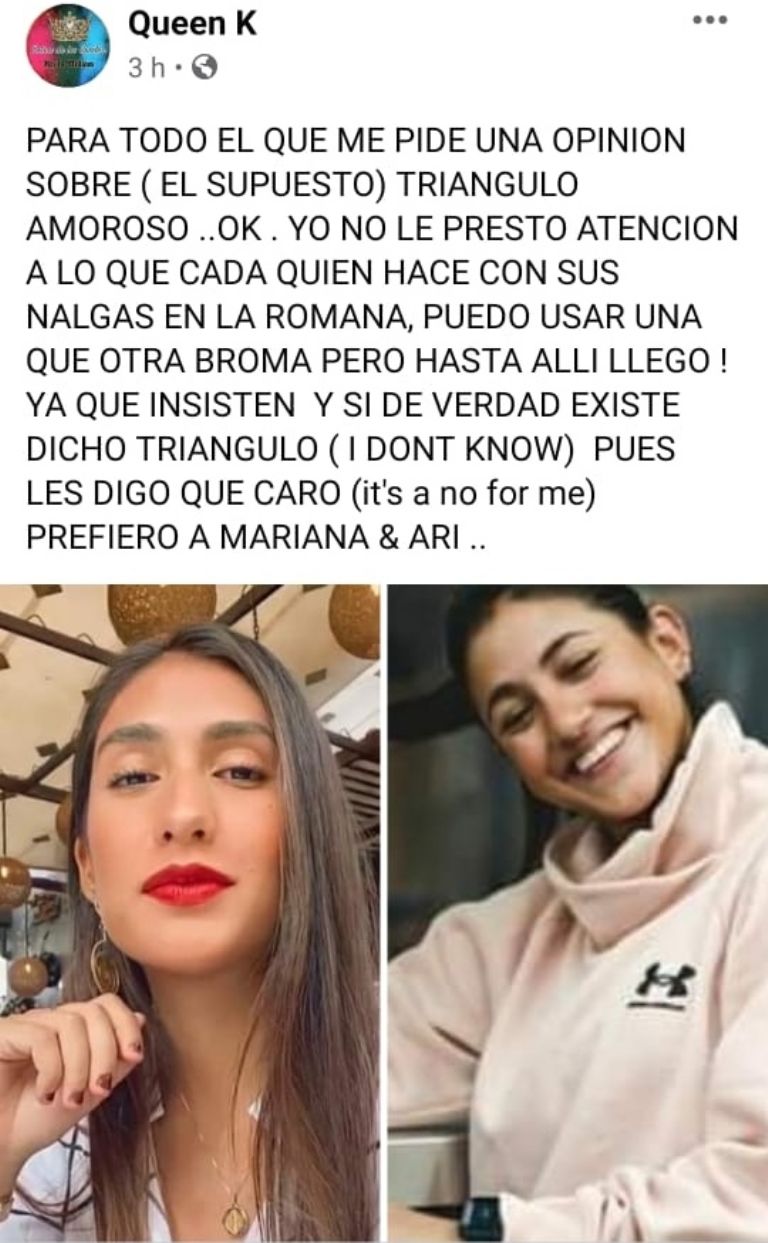 A través de Facebook, la reina de los spoilers desconoció si había o no una relación, pero se atrevió a dar a su favorita para ser la personas con quien Aristeo, hipotéticamente, tuviera una relación.