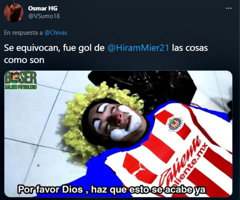 Pero Hiram Mier, a pesar del triunfo rojiblanco, tuvo que padecer las críticas incesantes de las redes sociales. Muchos aficionados de las Chivas, en redes sociales, liquidaron al defensa de 31 años por su error e incluso algunos con memes.
