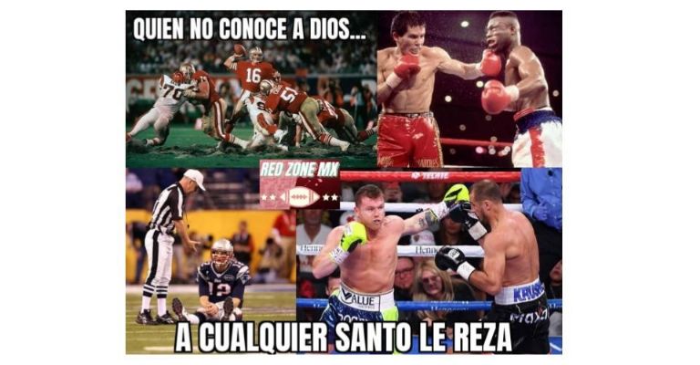 El meme, publicado por la página de Facebook Red Zone MX, critica a quienes no dan crédito a lo que consiguió Joe Montana, legendario quarterback, y Julio César Chávez, conocido como la Leyenda del Boxeo.
