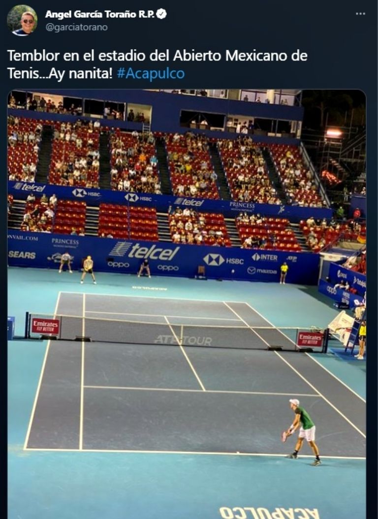 Reacción en redes sociales al sismo en el Abierto Mexicano de Tenis