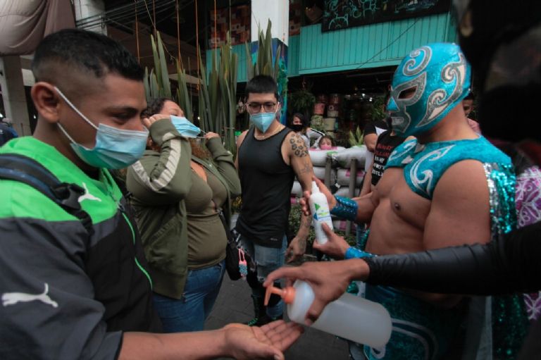 El Bandido y otros ocho profesionales de la lucha libre mexicana cambiaron el ring por los vagones del metro capitalino, donde se cercioraron que sus millones de usuarios llevaran cubrebocas para combatir la pandemia del coronavirus.