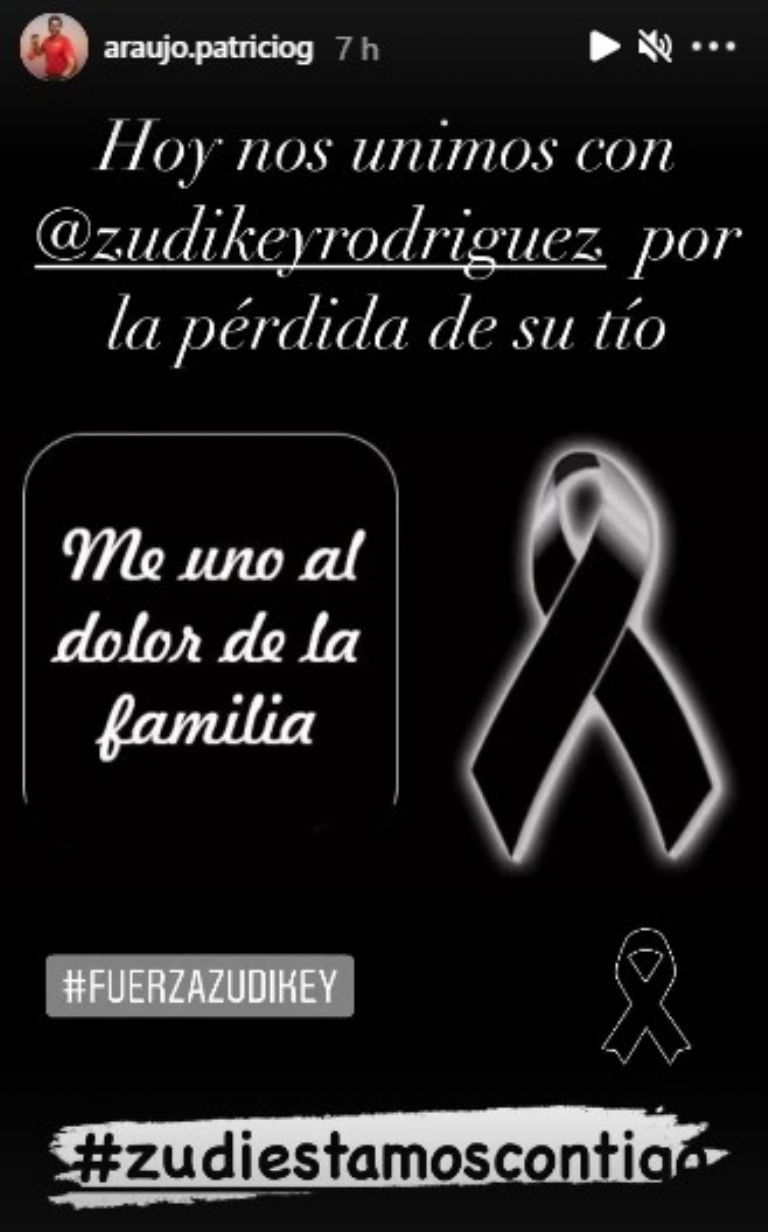 "Nos unimos con Zudikey Rodríguez por la pérdida de su tío", refirió la cuenta oficial del exfutbolista, aunque se presume que el mensaje fue escrito por los encargados de manejar sus redes sociales, pues él se encuentra en la competencia.