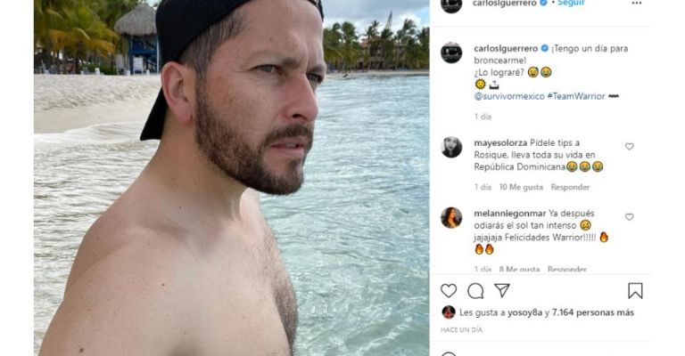 A sólo unas horas de ser confirmado como el nuevo conductor del Survivor México, Carlos Guerrero ya se encuentra en República Dominicana para comenzar a trabajar en el proyecto, no sin antes tomarse un descanso y disfrutar de las playas.