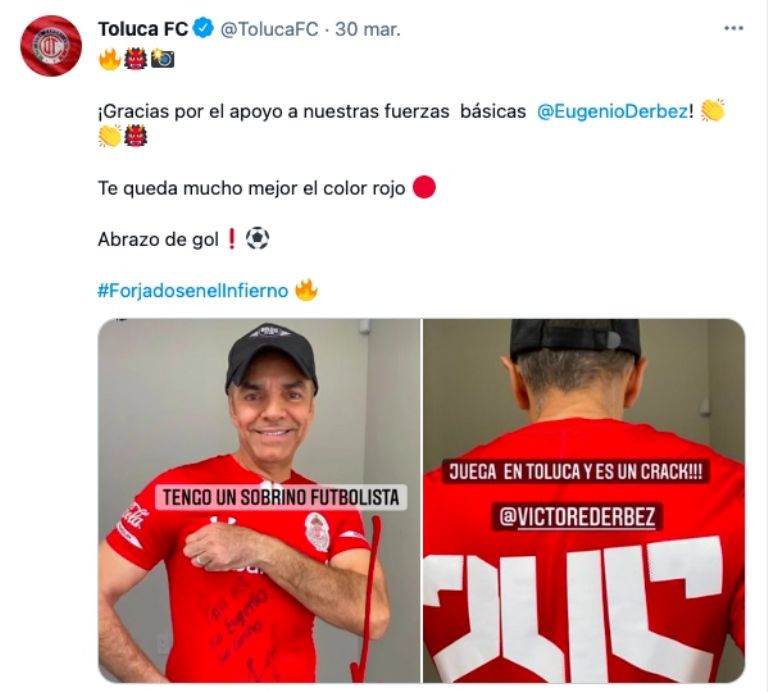En respuesta, el Toluca respondió el mensaje de Derbez en sus redes sociales, resaltando la imagen de Víctor como parte de la cantera del conjunto choricero.