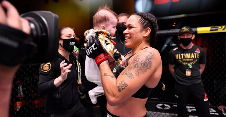 En dos minutos, la Leona sometió a su rival en el octágono. La rendición llegó y con él también el festejo de la brasileña, que lo hizo de forma enternecedora, al subir a su hija a la jaula para presentarla oficialmente ante el mundo de la UFC.