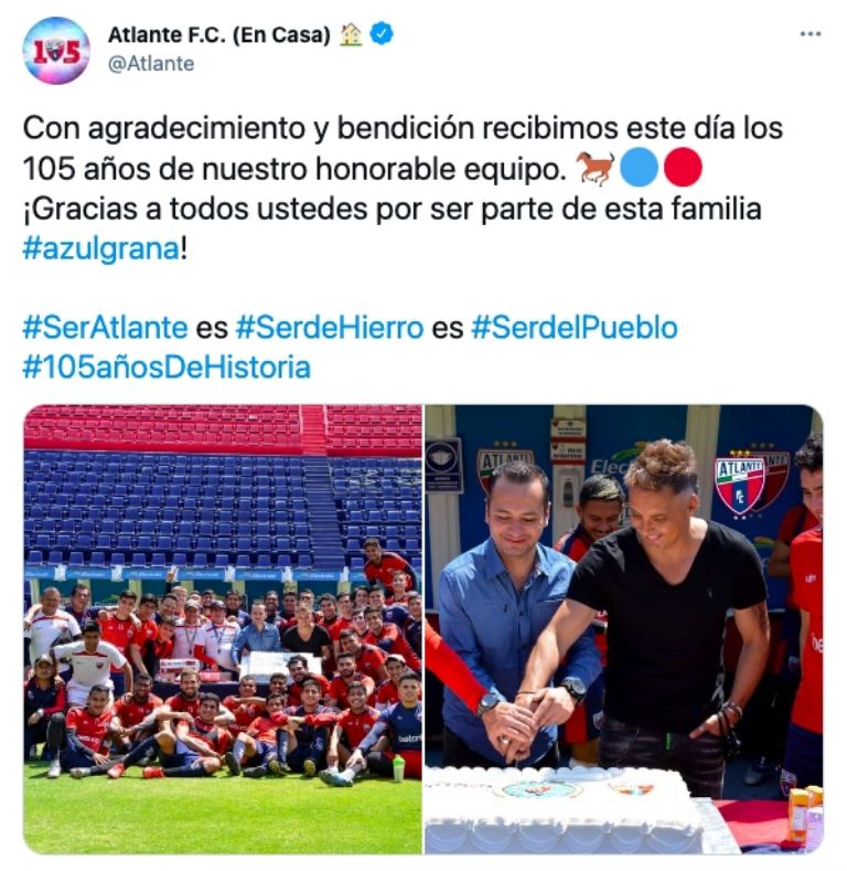 Atlante, el llamado equipo del pueblo, llegó este domingo 18 de abril a sus 105 años de vida. Cientos de aficionados, ex futbolistas y técnicos se unieron a los festejos de la comunidad azulgrana, que, pese a estar lejos de la Primera División, mostraron orgullosos sus colores en redes sociales.