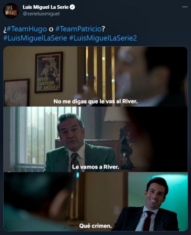 Patricio advierte el fanatismo de Hugo López por River Plate y se lamenta, ya que él le va al Boca Juniors, rival histórico del 'Millonario'. De hecho, se produce un cruce entre ambos por los ídolos que han surgido de dichos clubes donde el representante de Luis Miguel nombra a varias figuras de la historia del club riverplatense como Norberto Alonso, Enzo Francescoli, Daniel Onega y Ángel Labruna.