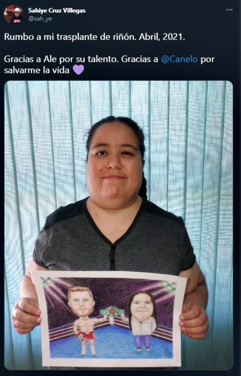 Junto al mensaje, Sahiye muestra un dibujo donde se la muestra a ella junto a Canelo levantando un cinturón del CMB arriba de un ring. Juntos han luchado por el objetivo que era conseguir el trasplante y el dinero suficiente para su tratamiento.