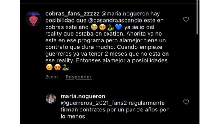 De ahí que Casandra se perfile como una de las nuevas integrantes de Guerreros 2021.