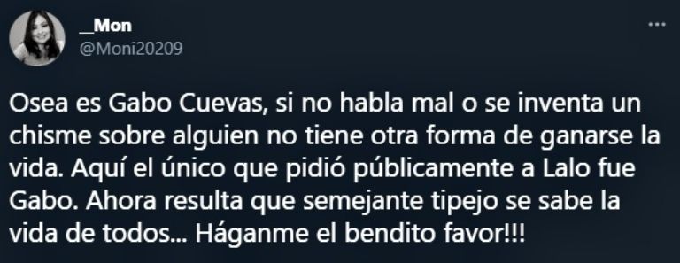 A su vez, aseguró que el cantante, ex La Academia, demostró esto una vez que Gabo y Lalo tuvieron un acercamiento, que no le gustó nada a Arana, quien los separó, según un video que expone tal hecho.