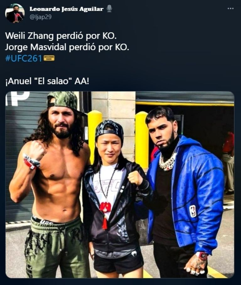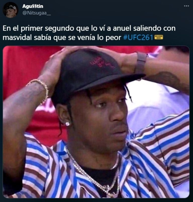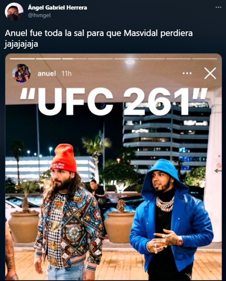 Sin embargo, en la función de UFC 261, Anuel AA fue víctima de burlas y hasta algunos memes por haber entrado junto a Masvidal en la presentación ante Usman. Algunos usuarios catalogaron al reggaetonero como "de mala suerte" o lo acusan de haberle "echado sal" al estadounidense.