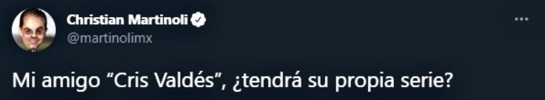Pero decíamos que la llegada de Cris Valdés ha tenido múltiples reacciones. Uno de los que sorprendió en redes sociales al hablar sobre el personaje de Cristian Castro fue el mismísimo comentarista Christian Martinoli.